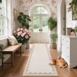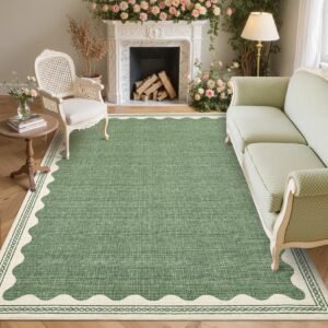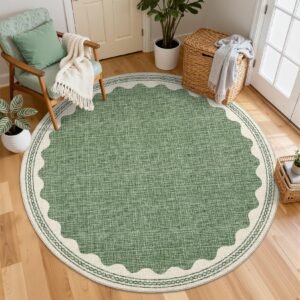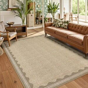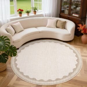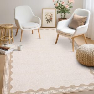 + Free Shipping· 【Unique Scalloped Design】It is a gorgeous washable and foldable rug featuring a minimal neutral cream tone with a scalloped edge design. A timeless, modern, and unique design to add to any space.Due to the nature of printing, the area rug design may vary slightly from the product photos, making each scalloped rug unique.