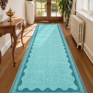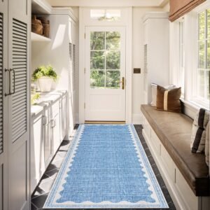 LocalStock 2×6 Runner Rug for Hallway Washable Kitchen Rugs Non Slip Solid Blue Modern Minimalism Soft Low-Pile Scalloped Indoor Carpet for Entryway Laundry Room Floor Mats