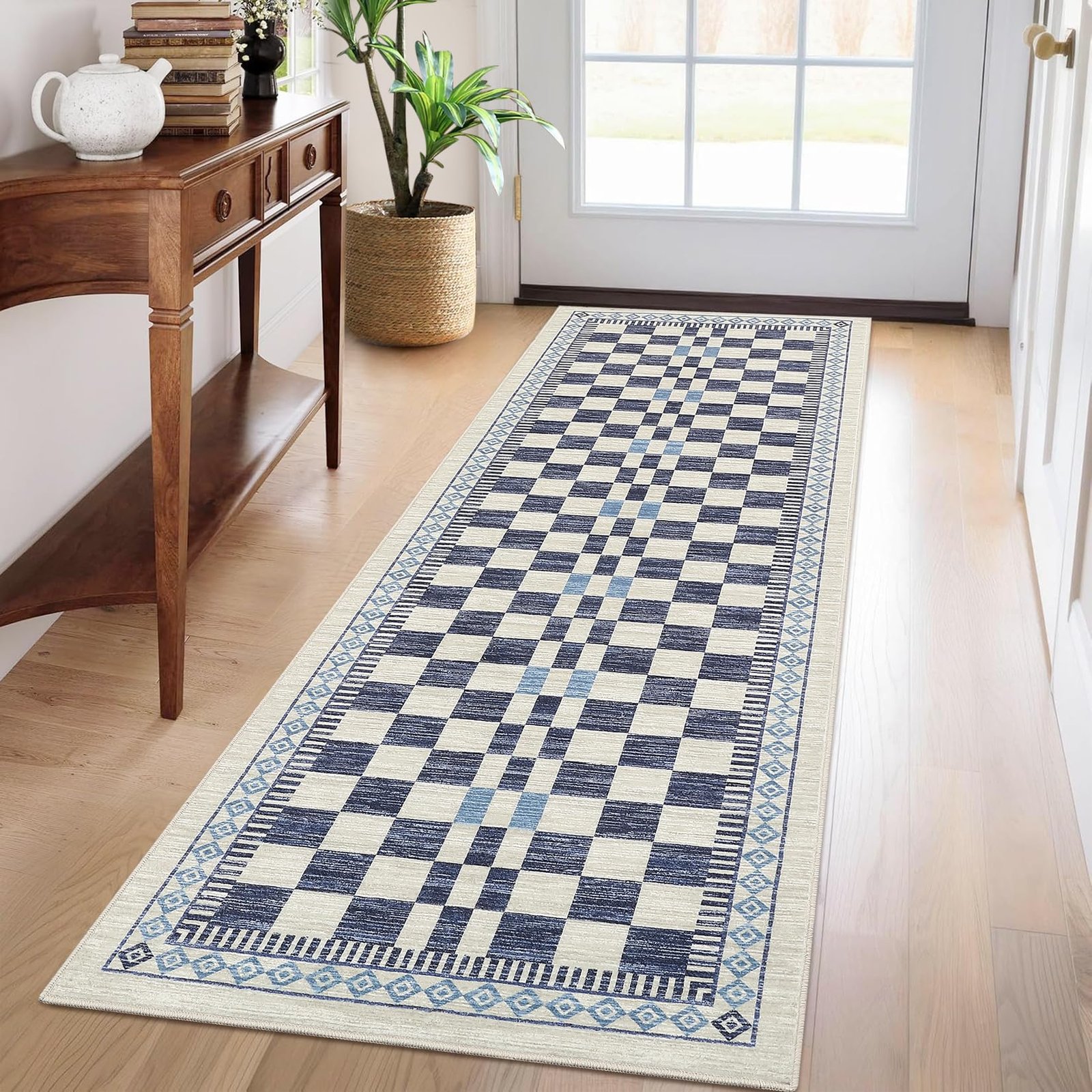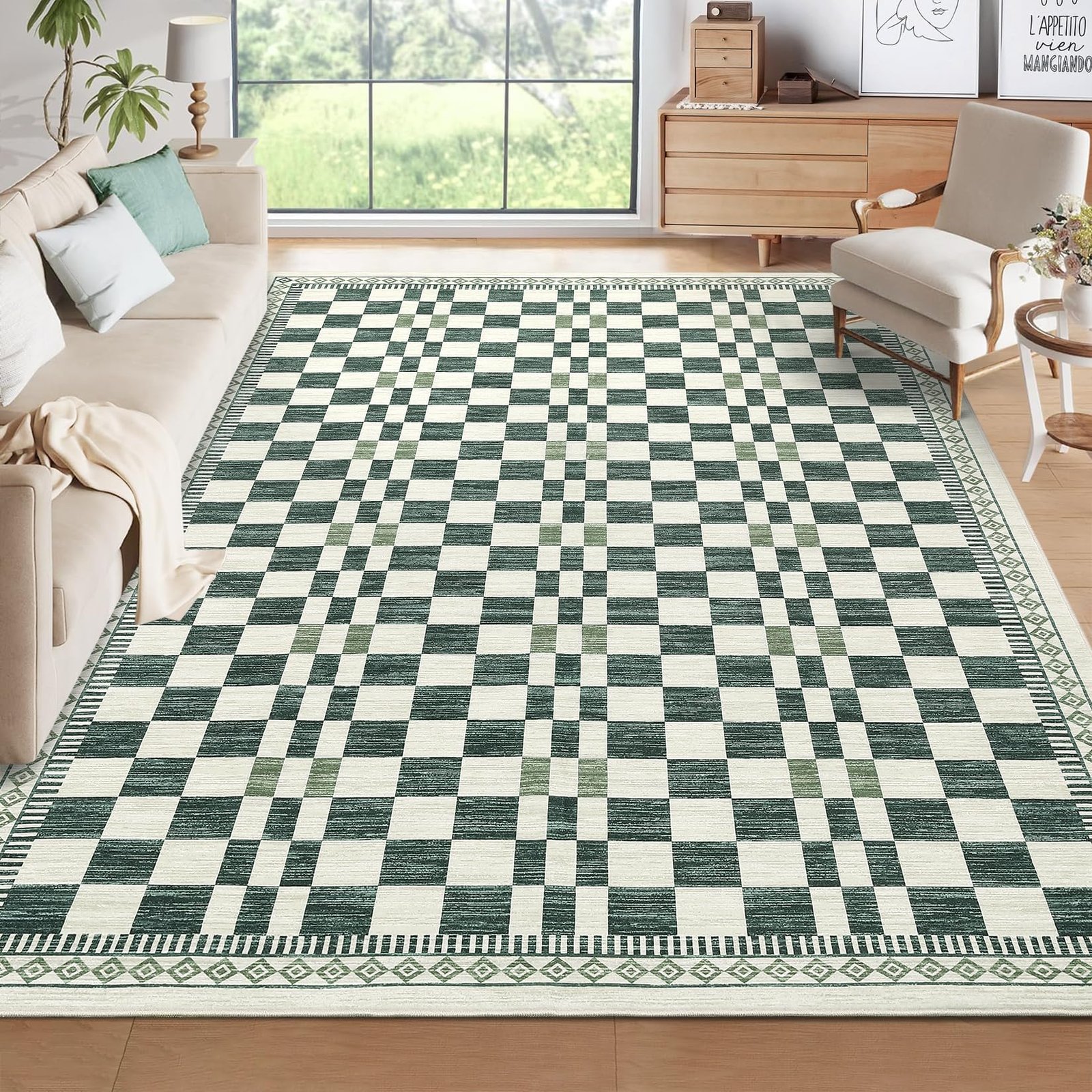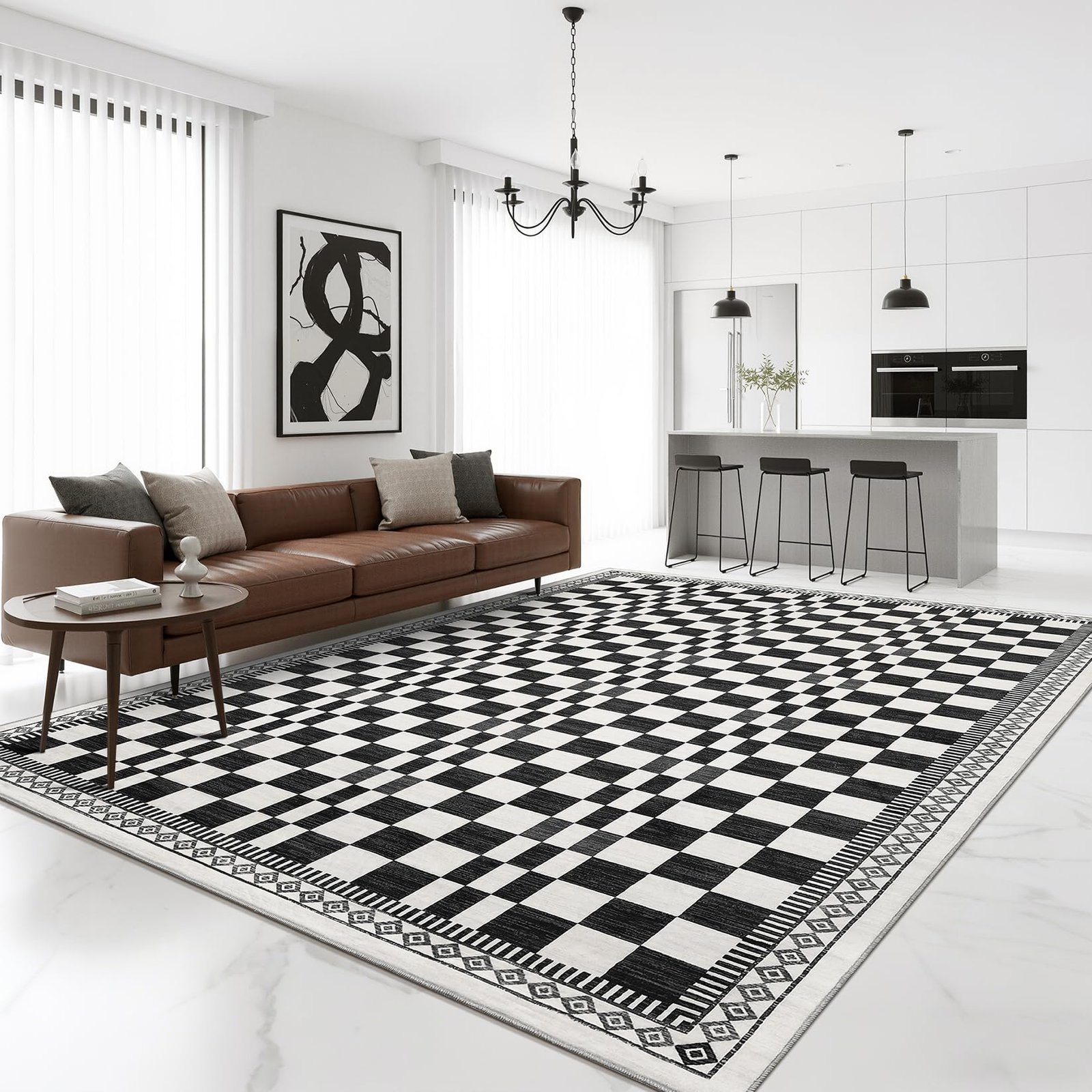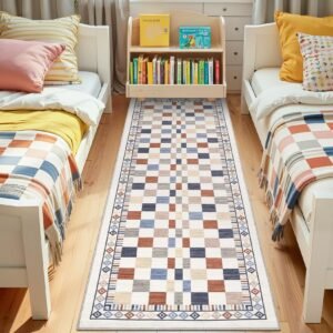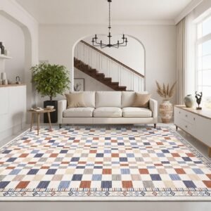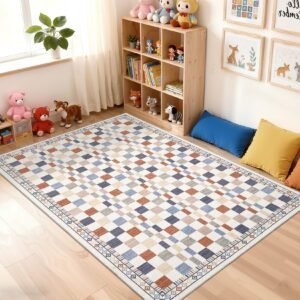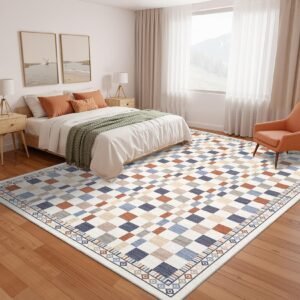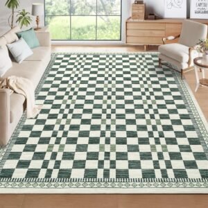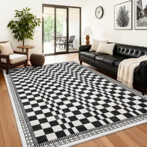 · Washable and Easy to Clean: This checkered area rug is fully washable, making it simple to maintain a fresh and clean look in your living room or bedroom without hassle.