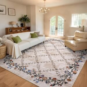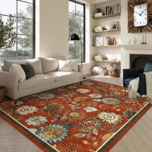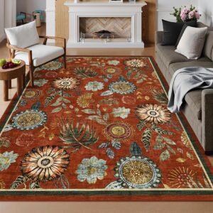 · Vibrant Floral Design:Elevate your space with our washable area rug, featuring a digitally printed floral design too intricate for handmade replication. The vibrant patterns make it the perfect living room area rug, bedroom area rug, or area rug for dining room-ideal for adding style to entryways, home offices, playrooms, and beyond.