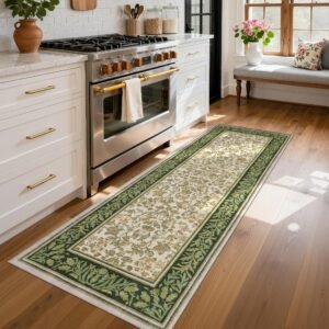 LocalStock 5×7 Washable Area Rugs for Living Room, Boho Vintage Rug Non Slip Low Pile Stain Resistance Indoor Soft Large Throw Carpet for Bedroom Dining Room Office Green Black