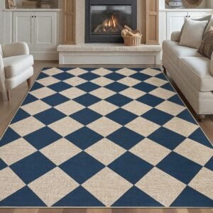 · Versatile Use Area Rug: Available in multiple sizes, this checkered rug is a safe and durable solution for the living room, bedroom, backyard, patio, kitchen, courtyard, corridors, entryway, and other indoor or outdoor spaces—adding a warm appearance to any area.(Slight color variations may occur due to different lighting and screen settings)