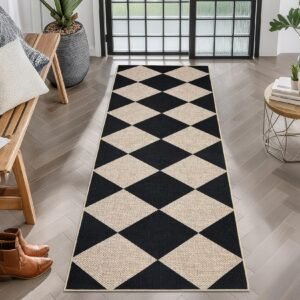 LocalStock Checkered Easy Jute 3×5 Entryway Rug Machine Washable Outdoor Patio Rug Non-Slip Backing Checkerboard Black Indoor Outdoor Carpet for Hallway Bathroom Kitchen Bedroom