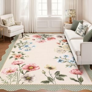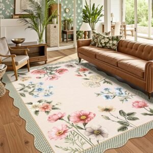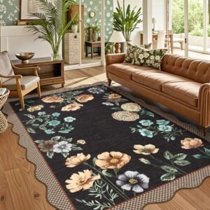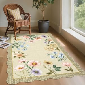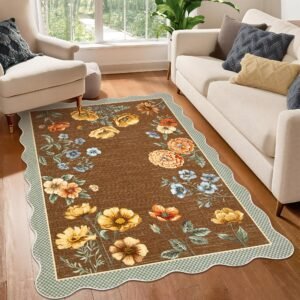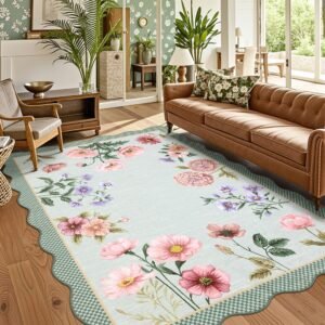 + Free Shipping· Unique Floral Scalloped Design: Inspired by pastoral charm, has a deep base color, vivid floral patterns. This floral scalloped rug woven by machine, The Scalloped edge design is digitally printed which details can’t be replicated by hand. This rug 5×7 is suitable for living room, living rooms, bedrooms, kids' playrooms, dining room, luandry room and offices, its ultra-thin profile allows easy placement under furniture brings a nostalgic, romantic, nature – filled vibe to any space.