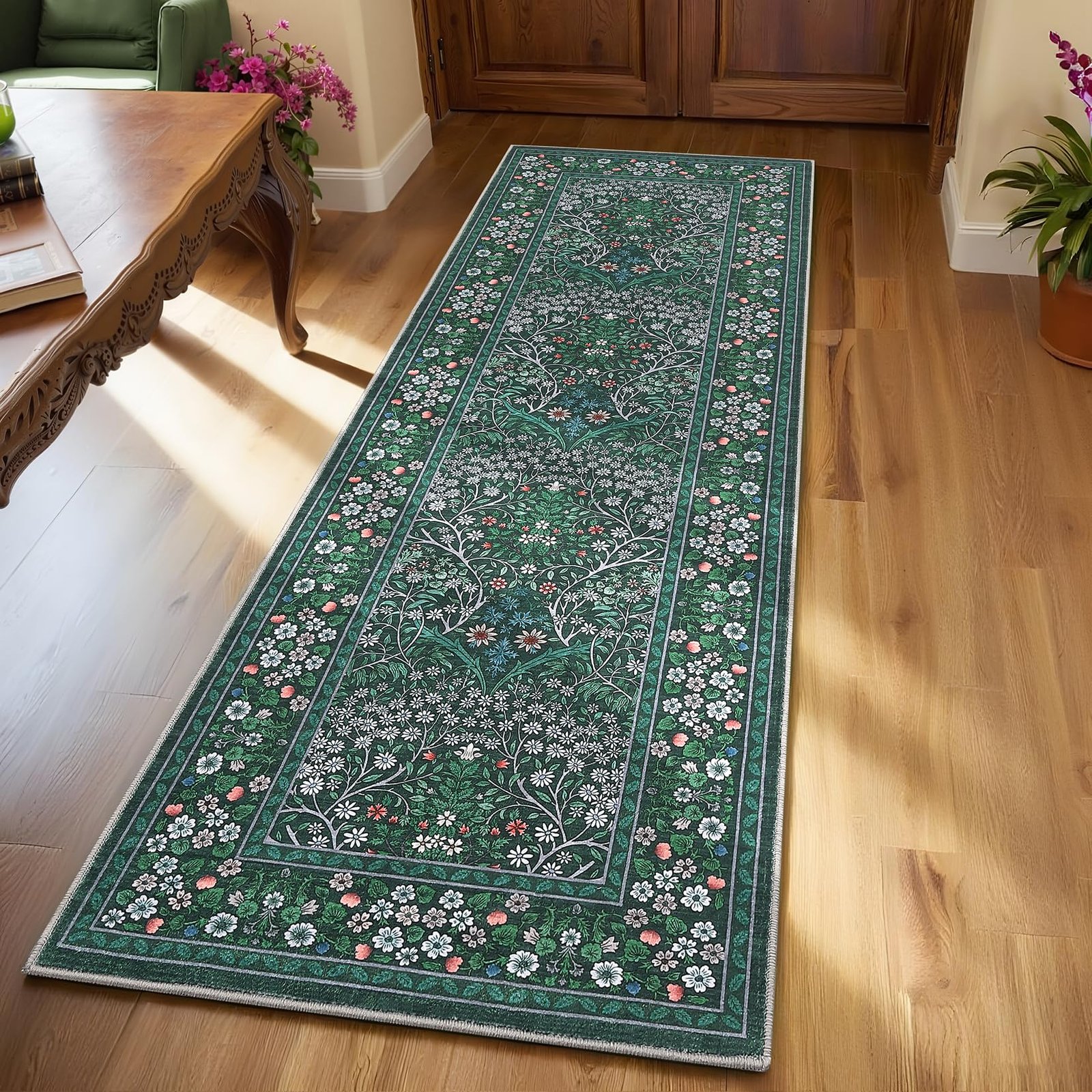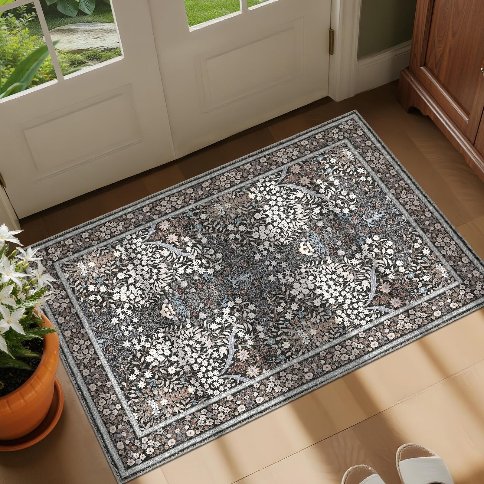 LocalStock Floral Washable 2×3 Rug Green Non Slip Boho Bathroom Rug, Soft Small Area Rug Indoor Door Mat Botanical Throw Rugs for Entryway Bedroom, Dark Green