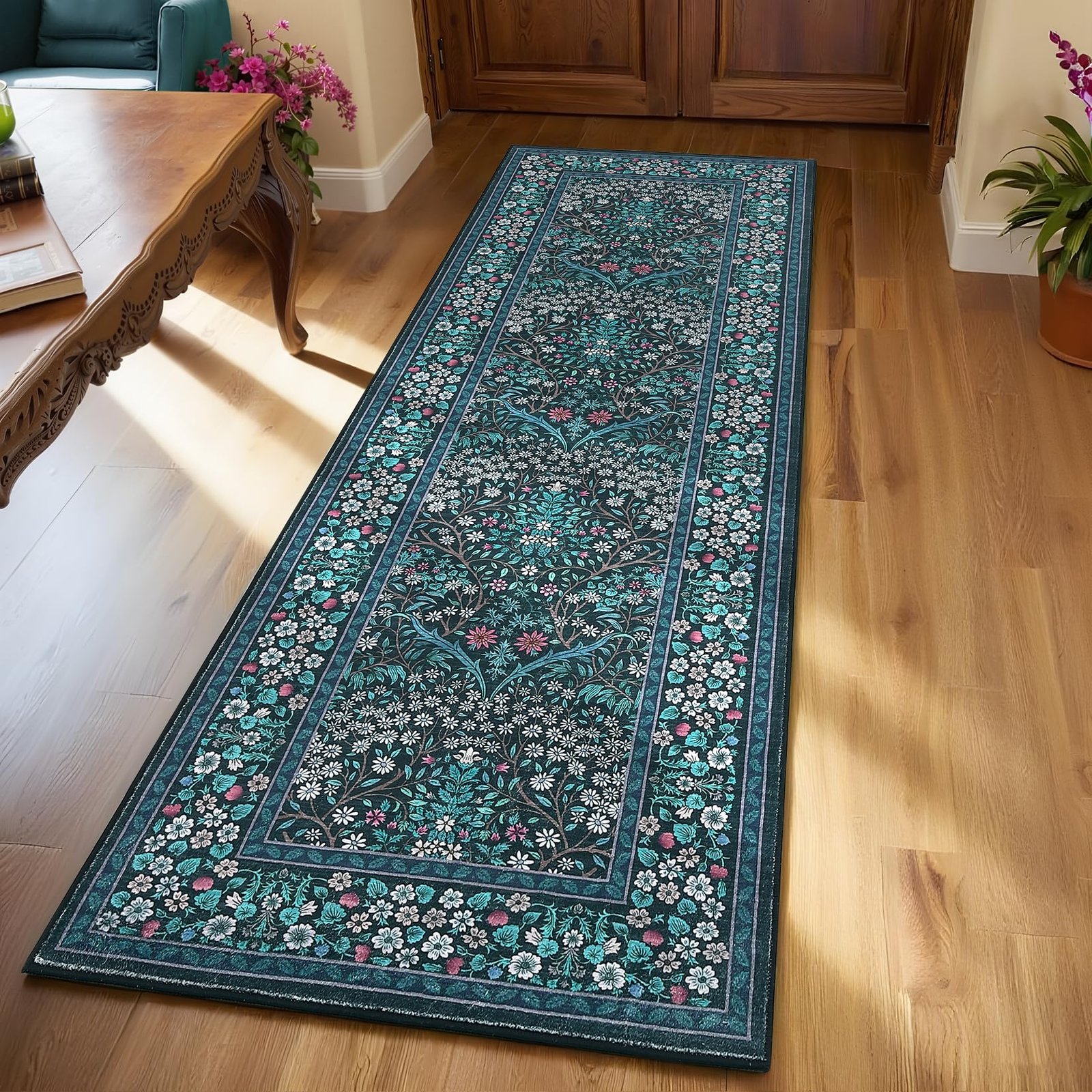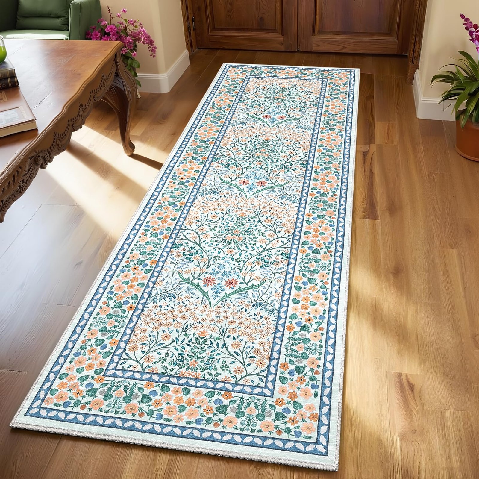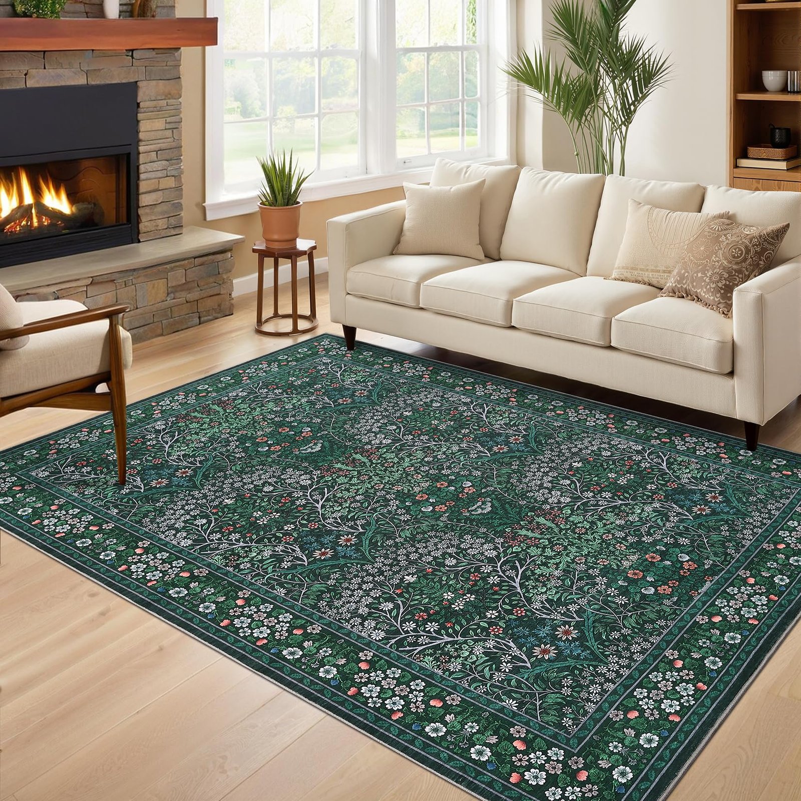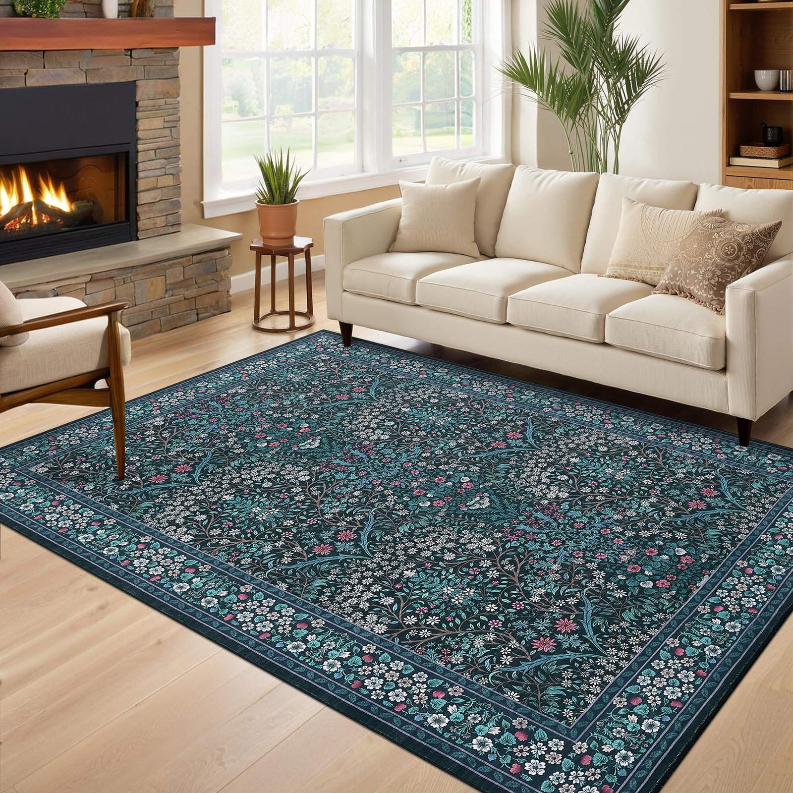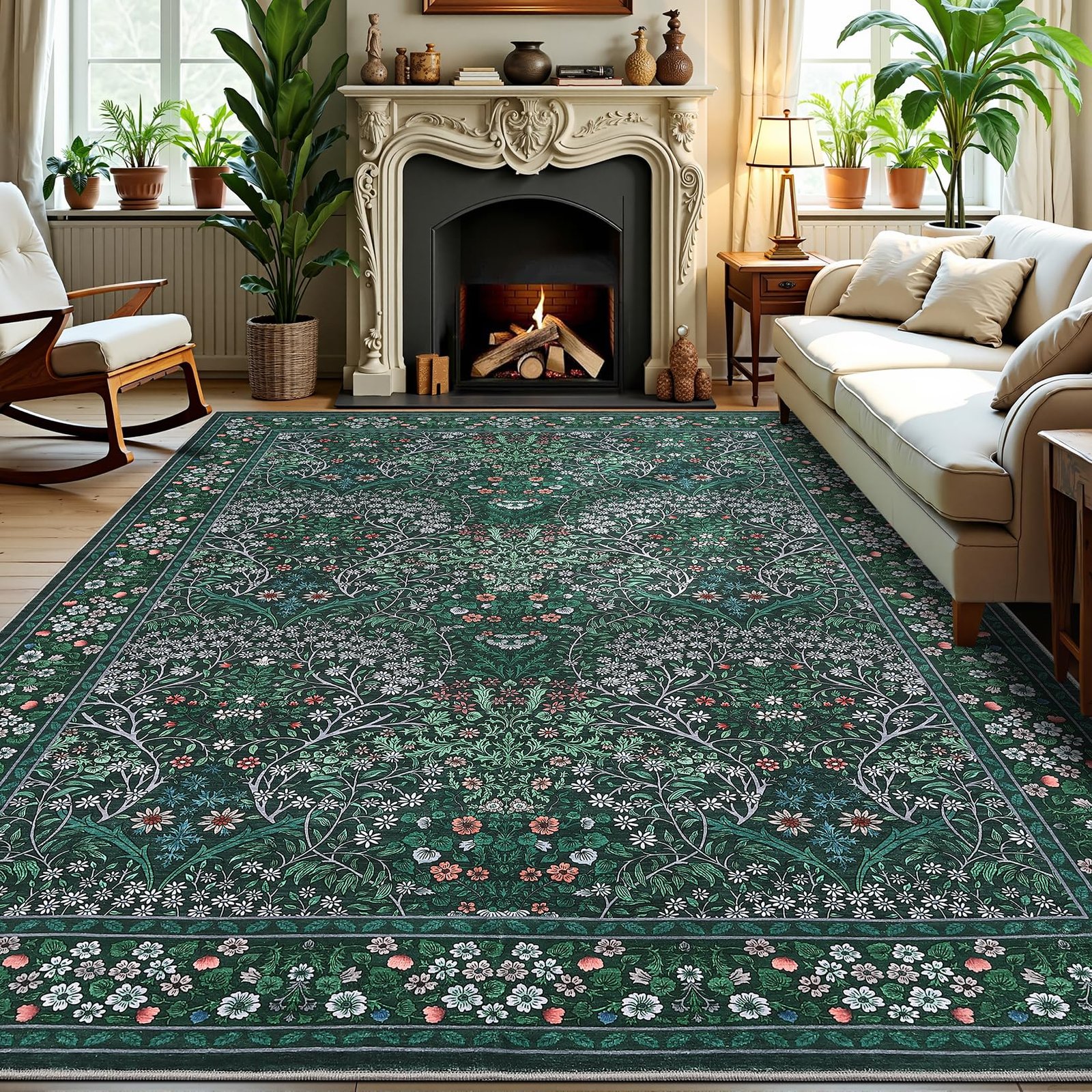 · Effortless Care: Take care of any accidents that happen on your botanical rug with ease. Simply throw it in the washing machine and keep your rug looking pristine. Use the robot vacuum to get rid of fine dirt for a clean rug