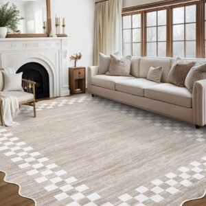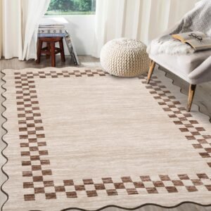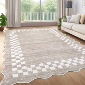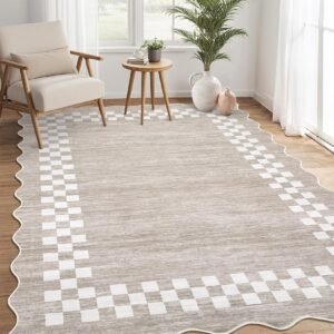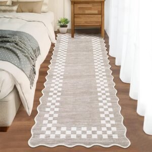LocalStock Hallway Runner Rug 2×6 Non Slip Scalloped Washable Rug for Kitchen Entry Stain Resistant Modern Border Throw Floor Carpet Long Runner Mat for Bathroom Living Room Bedside, Beige