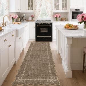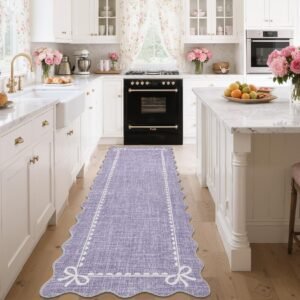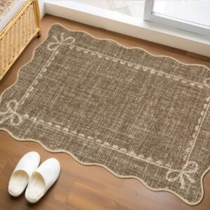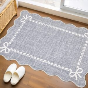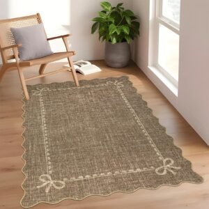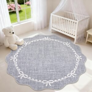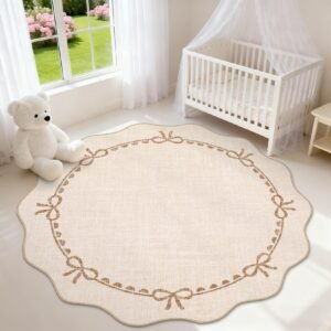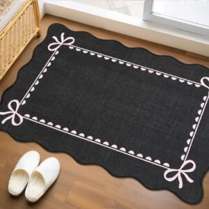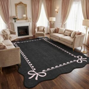 + Free Shipping· Elegant Scalloped Bow Design: This scalloped bow rug features a pure solid pink with delicate accents and graceful scalloped edges, blending timeless elegance with modern charm. The scalloped washable rug is perfect for adding subtle sophistication to any space