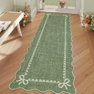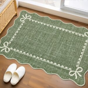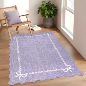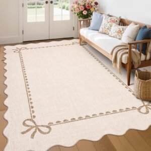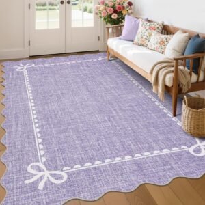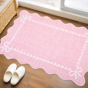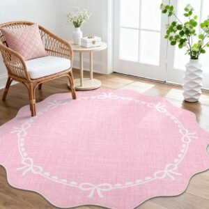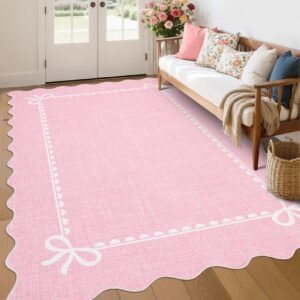 LocalStock Scalloped Bow Rug for Living Room, Solid Pink Rug for Dorm, Washable Rugs 5×7 Soft Low Pile Non Slip Scalloped Rugs for Nursery College Bedroom Decor Kids Room Playroom
